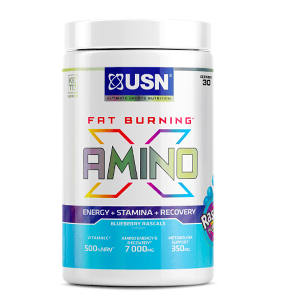 پودر چربی سوز آمینو ایکس یو اس ان USN Amino X Fat Burn حاوی BCAA و EAA است که به شکل گیری ماهیچه های بدون چربی کمک می کند و ال کارنیتین برای افزایش متابولیسم چربی سوزی شما در نظر گرفته شده است. این مکمل همچنین باعث بهبود خلق و خو و افزایش انرژی می شود و حاوی ویتامین ها، مواد معدنی و الکترولیت ها است.یکی از خواص قرص آمینو اسید کمک به حفظ و رشد عضلات بدن است. ورزشکاران می توانند از مکمل آمینو اسید در هر دو دوره کات و افزایش حجم استفاده کنند. در دوره های کات یا همان چربی سوزی فشار تمرینات بالاست و به همین علت مصرف آمینو اسید ها می تواند از تحلیل رفتن عضلات جلوگیری کند. در دوره های افزایش حجم نیز ورزشکاران می توانند از مکمل آمینو برای افزایش سنتز پروتئین و عضله سازی استفاده کنند. از دیگر فواید آمینو در بدنسازی، چربی سوزی است که در صورت رعایت برخی نکات می تواند اتفاق بیفتد. همان طور که در توضیحات فوق نیز به آن اشاره شد، آمینو اسید ها اجزای تشکیل دهنده پروتئین هستند و پروتئین نیز نقش مستقیمی در رشد عضلات بدن دارد. عضلات برای حرکت و فعالیت نیاز به انرژی دارند که این انرژی از طریق مواد غذایی و همچنین چربی های ذخیره شده در بدن تامین می شود. زمانی که توده عضلانی بدن رشد کند، برای حرکت دادن آن ها به انرژی بیشتری نیاز است. این عامل به طور خودکار سبب افزایش سوخت و ساز بدن می شود. در این شرایط اگر شخص بتواند رژیم غذایی مناسبی داشته باشد، شاهد کاهش میزان چربی های زائد بدن خود خواهد بود.از دیگر فواید این مکمل می توان به تاثیر مثبت آن در افزایش توان و استقامت بدنی اشاره کرد. مصرف آمینو اسید می تواند استقامت بدن ورزشکار را بیشتر کند و سبب عملکرد بهتر او در حین تمرین شود. مکمل های آمینو اسید به دلیل داشتن ایزولوسین، والین و لوسین، ظرفیت بدنی ورزشکاران را تا حدی افزایش می دهند. داشتن تمرین مناسب می تواند سبب رشد و پیشرفت بیشتر شخص شود.